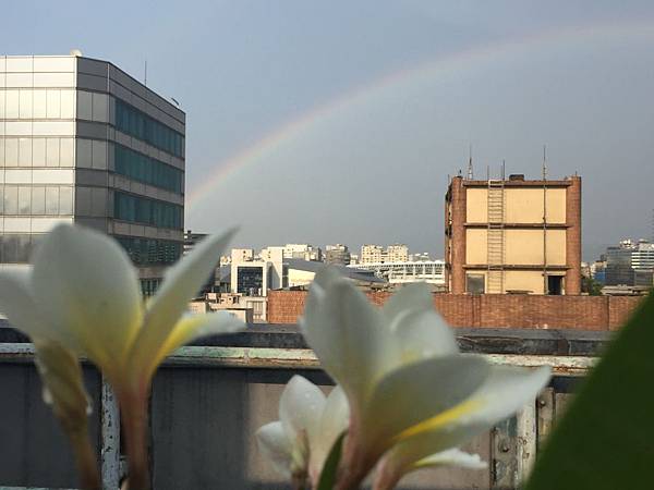 下過雨的台北 一抹大大的彩虹粉彩般的現身